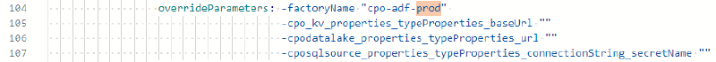 If we defined the key vault, data lake or SQL server resource parameters, we’d also provide new values for them here too.