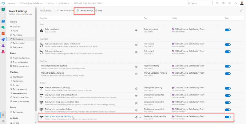 How our approvers are notified of their required action is defined at the project level in Azure DevOps. It’s important to know that making any changes here will affect all pipelines in that project though.