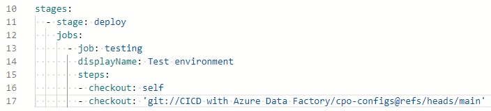 We need to change “job” to “deployment” which will allow us to add the environment reference but that also means we have to add a few more lines before executing steps.
