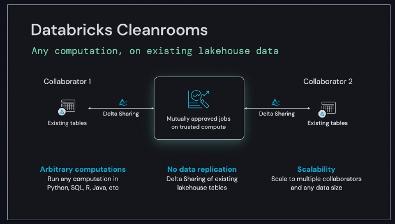Coming to this year’s conference, Delta Sharing has been established as the foundation for many new features with the announcement Databricks Marketplace and Cleanrooms for example, both built upon the Delta Sharing protocol. We’ll explore Cleanrooms below and I’ll look at the Databricks Marketplace in it’s own post.